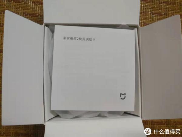 打开盒子,上面是说明书,下面就是套着保护袋的米家夜灯2▼