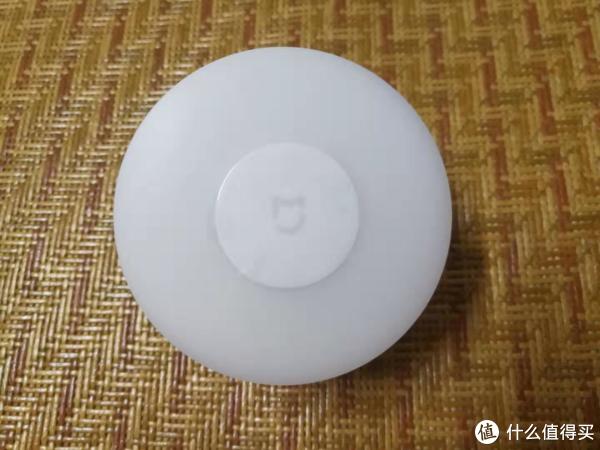 夜灯正面是圆形的,外圈是发光区,中间印着米家商标的部分是感应区▼