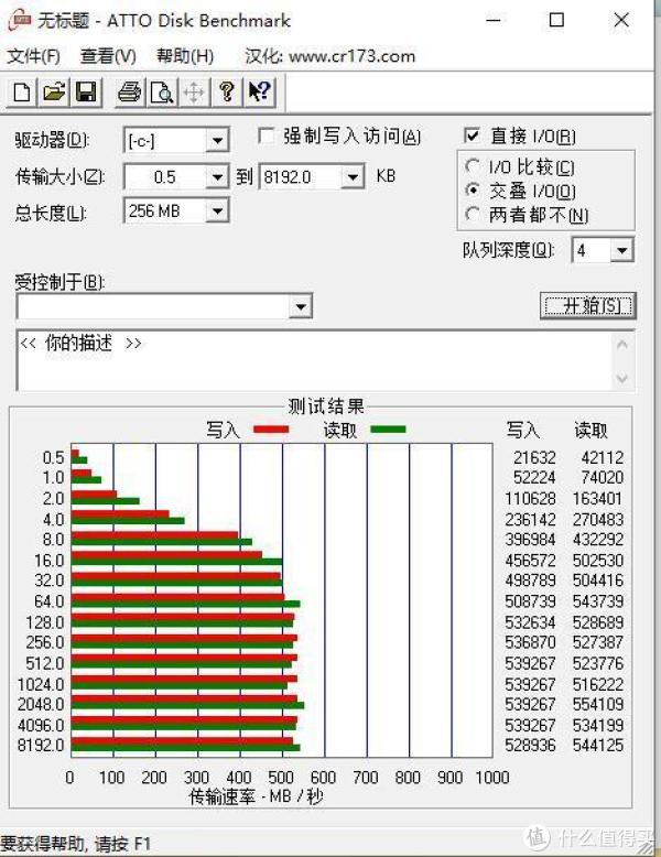 首先将西数的固态放置在A盘位、七彩虹的固态放置在B盘位。通过Type-C接口,与电脑连接。先来测试一下这两块固态的读写数据。通过主流的测速软件ATTO Disk Benchmark来测试,这款软件是由ATTO公司出品的一款磁盘/网络性能测试工具,对数据包的测试非常严谨。通过软件测速,结果显示,西数的固态硬盘最高读取速度 554MB/秒,写入速度539MB/秒,这个速度表现非常不错。而七彩虹的数据也同样不错,最高读取速度也达到了462MB/s,写入速度461MB/s。从数据方面来看,两块插入到优越者硬盘座的固态硬盘,都发挥出了硬盘最大的性能,表现都很出色。