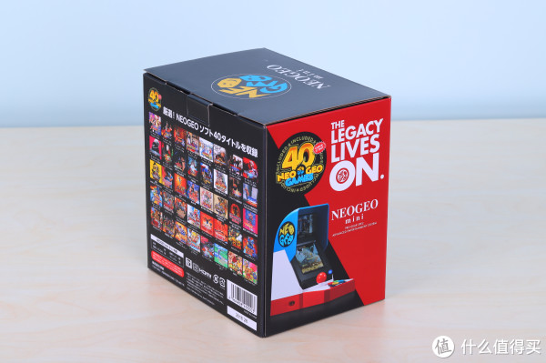 包装正面印有"NEOGEO"那硕大且魔性的 LOGO ,下面还附带 SNK 及其成立 40 周年的纪念标识。来到包装的背部,街机内置 SNK 旗下的 40 款经典游戏也都一一被列在了包装盒上,从中可以我们可以看到熟悉的《合金弹头》、《侍魂》《战国传承》以及《拳皇》系列等经典手游。看到这里笔者已经迫不及待想要体验一番,找回当初的那份快乐。