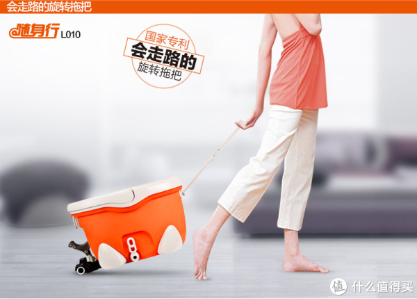 如上图,另外它还有一个卖点是可以牵着走,我仔细想了一下,这产品定位应该是家庭用。想象一下,拖把桶无非就是放在卫生间或者阳台。空桶重量不重,小孩都能轻松提起,大人就更不用牵着走了,个人一般情况下拖完一片区域后,都是提着拖把去卫生间清洗再甩干,装满水的桶相当重!还需要让它到处走吗?不怕洒水吗?果断放弃这蛋疼的设计。