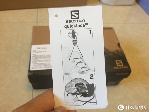 但是开箱瞬间的大红色瞬间燃起我心中的一团火。这应该是我穿过颜值最高的跑鞋了,吸睛程度100%,大红色作为S-lab系列的主打颜色,Wings8作为大红鞋Wings的升级版,中底鞋面间增加了一抹白色,让鞋子本身变得更加醒目。吊牌上有quicklace的使用方法。