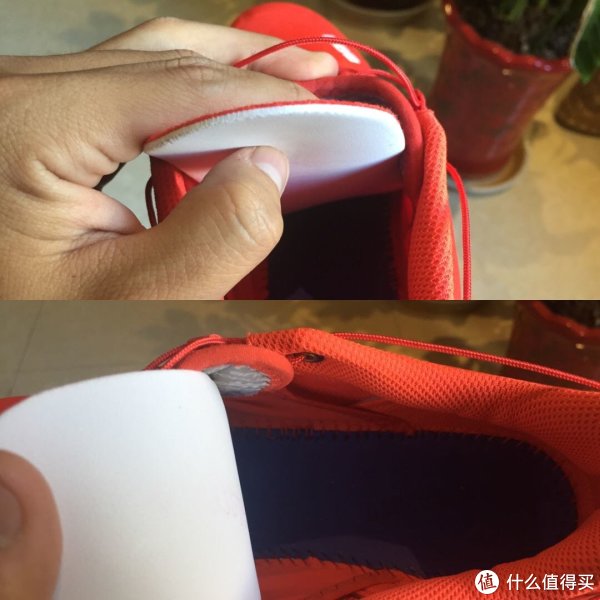鞋垫并没有使用Ortholite泡棉,可能是轻量化考虑。但是值得吐槽的一点是,你好歹别把鞋垫粘住啊。。。。里面是粘住的,我怕把鞋垫扯破,没敢用力拽出来。