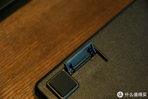 在键盘的底部四角带有防滑垫脚,防滑的效果还算表现不错,甚至连撑脚上都带有防滑垫脚,在设计上可以说是考虑得十分细致,但由于接触面积太小,磨损也会非常高,所以小桀对于撑脚上的防滑垫脚耐用性有些许担心。