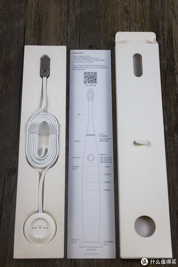 拿出牙刷下层便是配件和说明书了,独立对称的摆放也还挺漂亮。