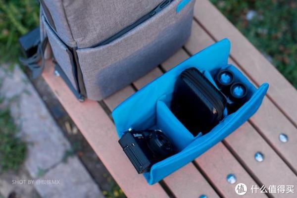 独立的相机仓可以轻松容纳一机两镜,厚实的内胆保护层调节灵活,能带给相机充分的防护,这点是普通双肩包所不能媲美的。