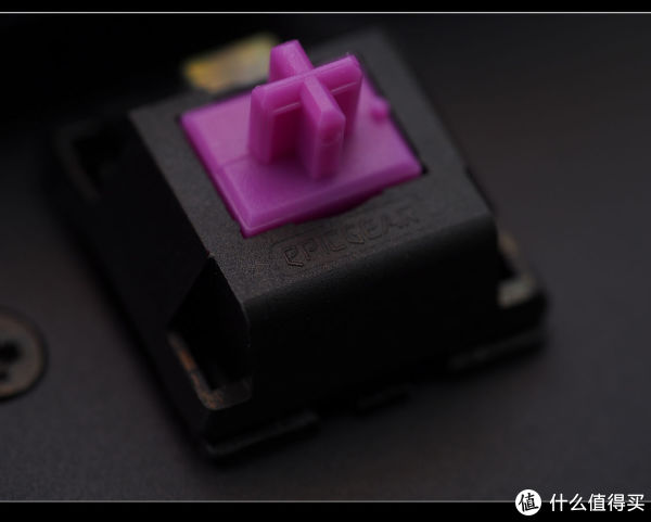 轴体上有明显的异极logo,十字插口设计也便于兼容市面上众多的键帽。异极的键轴的压力为50g,键程则为1.5mm,触发速度更快。