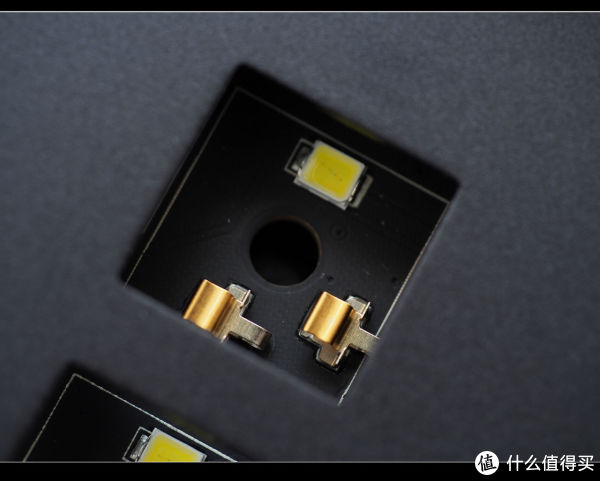 我们可以看到每个魔阵包含2个触点和一个LED光源。Z型触点材料使用依然是铍铜并且均为镀金,同样据说换轴次数达到1000万次,相当不错的一个指标。