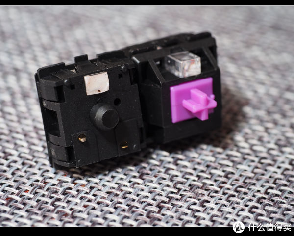 轴体背部,可以看到2个触点和一个导光条。轴均采用铍铜合金,比普通合金更耐用