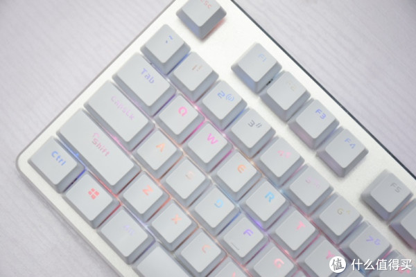 这里也许有人会吐槽为什么不是PBT键帽,这样一来不打油啊,我觉得吧,PBT键帽比ABS键帽厚,一般来说,PBT键帽透光效果要差点,从灯效方面考虑,选择ABS镭雕键帽性价比更高。