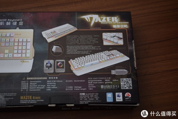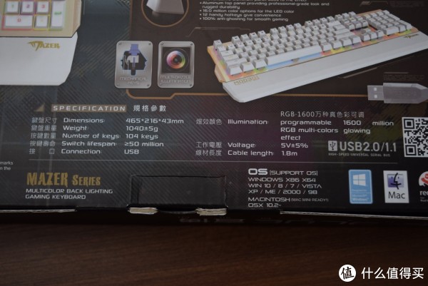 因为有当初宜博薄膜键盘做比较,所以能看出来包装还是宜博的一贯风格。用色都挺大胆。包装上的键盘图片都是金灿灿的。正面主要是产品名和键盘照片。