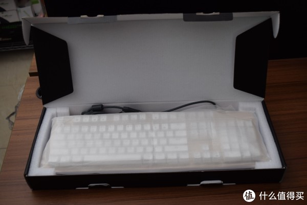 内部较为简洁。键盘左右由两个泡沫固定在盒子内部,对于键盘的长途运输起到保护作用。整体还有一层海绵纸包裹。整体的包装较为简洁。遇到暴力运输时对键盘的保护会有些牵强。值得一提的是包装盒的硬度足够,有较高的抗压性。