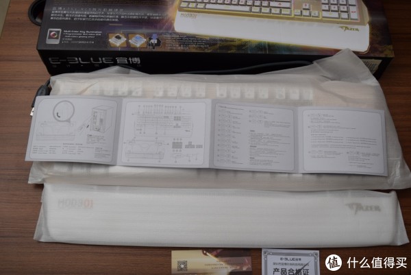 内部的全部物件,键盘 配套手托 说明书 合格证 和一张不知道什么作用的宜博卡片。