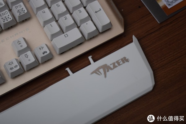 因为是键盘配置手托,在观感上两者的整体性很强,手托两边的两个尖角凸起,直接契合到键盘的侧边,强迫症看着表示很爽 键盘与手托之间的间隙也是均匀一条。中间稍宽,具体作用,后面提到