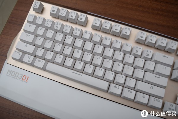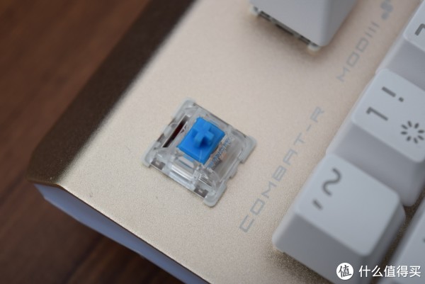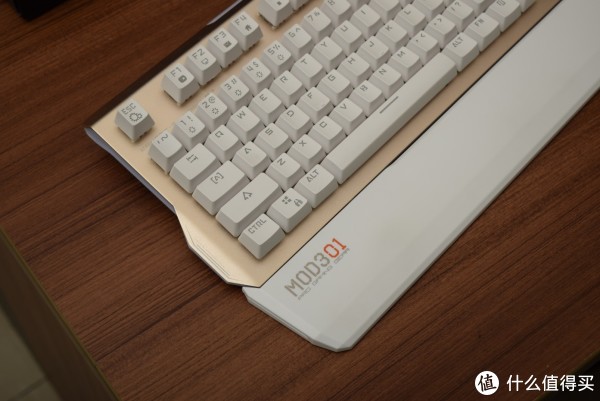 金色磨砂面板配上白色键帽,在机械键盘同质化严重的今天算的上是一个个性的存在。金属类似于iPhone 5S的香槟金(也就是我们常说的土豪金)金色不是不太明显的那种。