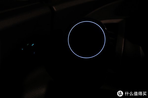 接上无线充电器,指示灯蓝色闪烁三次,无线充电面板上同样会亮起一圈蓝色灯,官方给出名称叫“迎宾灯”,名字好听,科技感也十足。同样也可以帮助车主在天黑的时候一眼找到无线车充。