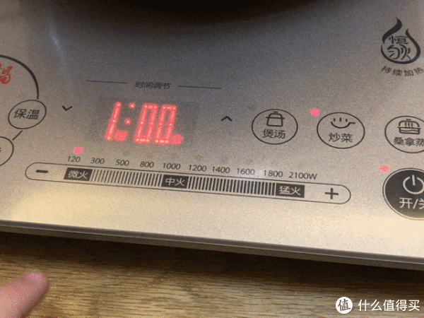 这里要特别提一下温度的操控,和一般电磁炉的按压增/减温度不同,想到之前租房的电磁炉就是温度键坏掉了。。修一下竟然要80元,呵呵。