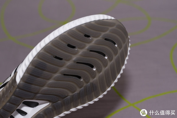 粗略的看完还是看看各处细节好了,首先还是接着鞋底来看,整个鞋底是半透明的材质,具体是什么倒是没标出来,不过脚掌这里有一块是镂空的,可能是为了提供更好的弹性