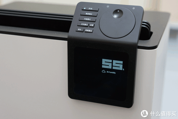Albert除湿机的使用及设置都是依靠机身左上方的控制面板来进行操作的,其中功能选择使用了按钮,而数值设置则是通过一个转盘来进行调节,其实按照我的思路,只要把转盘设置成可点击的,就能把按钮也给省了。