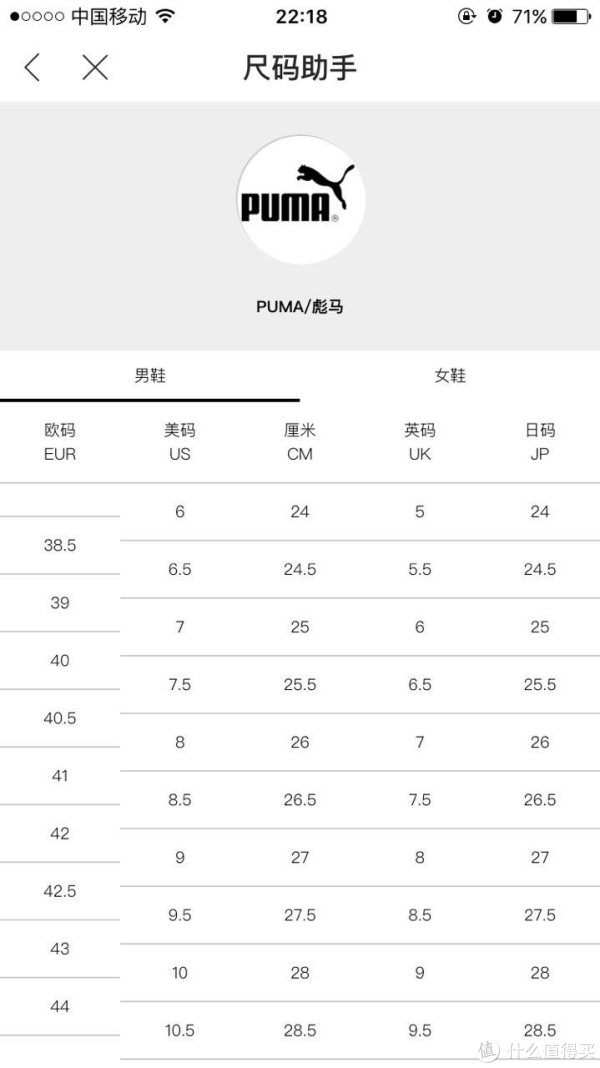 我的脚丫子长度是24cm,平时穿大部分品牌的跑鞋都是选择40码,长度大概25cm的鞋。在购买此款彪马的跑鞋的过程中,发现彪马的跑鞋尺寸有些不同,长度25cm的尺码对应的是39码,参考了张大妈一键海淘里的尺码助手,最后决定购买39码。收到鞋子试穿之后,发现这个尺码确实没选错,张大妈的尺码助手还是很靠谱的。