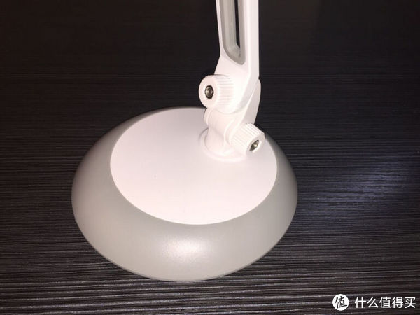 支架的正面下部设计成圆盘式底座,灰配白,贴住桌面一面采用7个小圆吸贴的工艺,让底座能够平稳摆放不同角度不易跌倒。