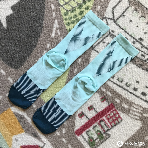 袜子平铺如下,配色清新,第一感觉有点长。