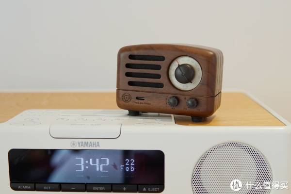 与迷你音响放在一起也挺和谐的,正巧这款YAMAHA的上面板也是木纹的~