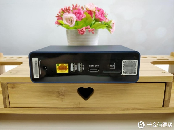 玩客云的各种接口,被设计在机身的背面:电源口、千兆网口、2 x USB 2.0 接口、HDMI 输出接口及一个 SD 卡槽。