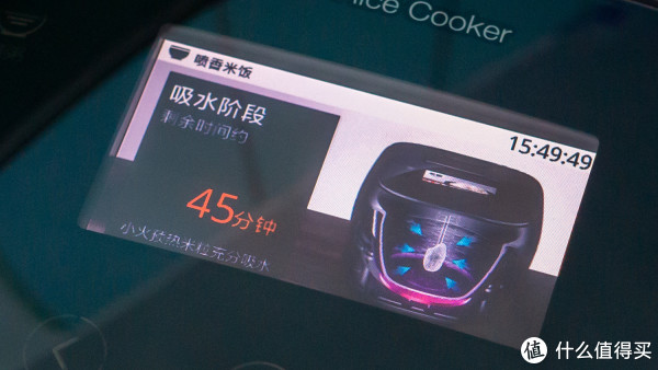 ▲通过屏幕,可以了解现在处于哪一个阶段,饭还有多久才烧好。就可以跟好地安排做菜的时间了。