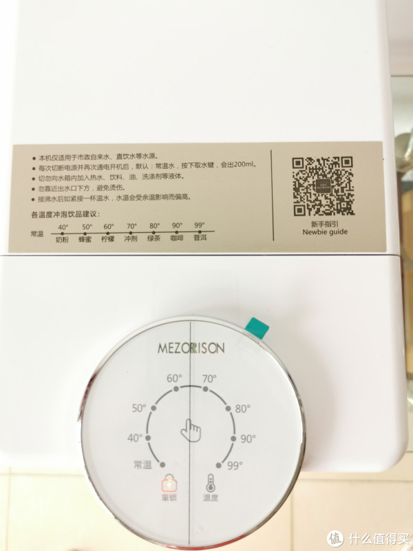 机器顶部印有操作提示,那个不同饮品需要冲泡的水温标识这点挺实用的。