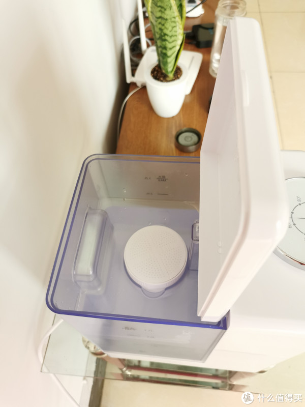 水箱部分最大容量是3.2L,采用的磨砂食品塑料材质,上开盖设计,可以直接取下来接水。