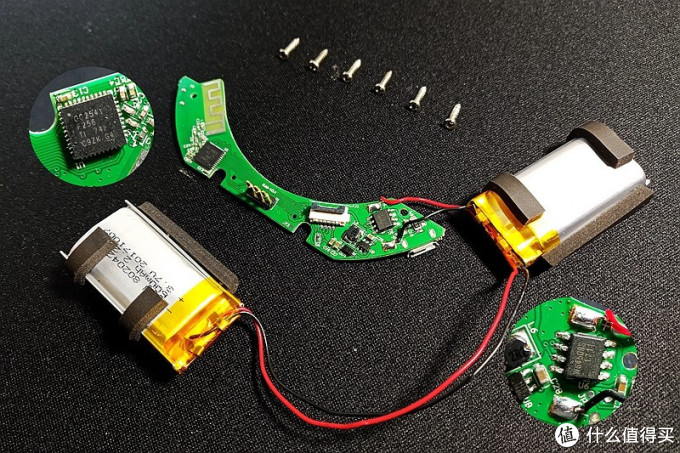 吐槽完毕,继续拆机。将6颗螺丝拆下,就可以将口罩彻底解体。可以看到净朗企鹅智能防霾口罩内部采用了两块锂电池以并联方式供电,主板和口罩内部的结构配合完好,可以看出是经过特别设计的。两块电池的设计,应该是为了获取更好的佩戴舒适性,防止单个电池造成口罩重心偏移,长时间佩戴会产生负重感。