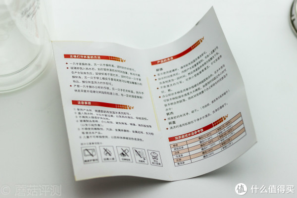 ▼杯子还有说明书?我给你看看这个说明书的主要内容,1、正确打开杯盖的方法;2、注意事项;3、产品的清洁;4、泡茶最佳水温参考值