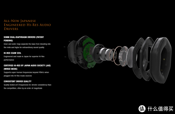 声学部分,单元采用双磁路双线圈设计来驱动双层设计,虽然这种技术复杂度并不大,不过专利技术的双振膜形式很好地在单元设计驱动效率改善了整个蓝牙单元的对应的电路和功耗平衡上的效率考量。所以很多人在不断给单元镀膜,很容易忽略了现有单元的产品结构改善和纹理等优化,V-MODA的产品普遍高低频音域宽广,实际上离不开基础的单元合理的设计优势。