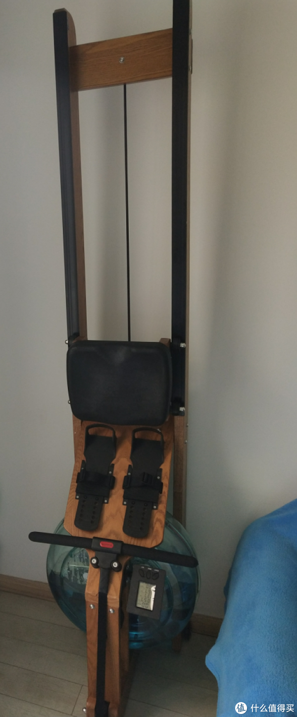 这款划船机可以在不用的时候立起来以节省空间,不过立起来的时候还是有点分量的,女孩子一个人要小心一点。