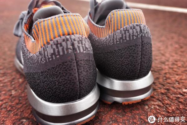 支撑性8/10:后跟有隐藏式U型TPU,很大很硬。但是我跑步后跟基本不落地的,只是调节体能时给后掌稍微落地,所以后跟支撑再强对我的作用不大。两侧和足弓部位的支撑就偏弱,两侧只靠鞋面做支撑,中底也没有内置TPU,好在前掌做得较宽,鞋子对脚踝肌肉还是有一定的要求。