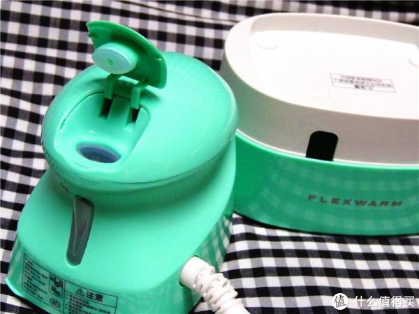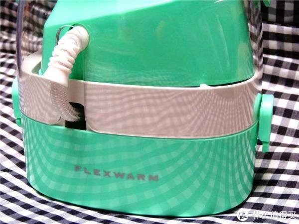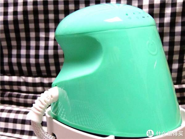 打开熨斗收纳盒子两边的锁扣,能够卸掉透明的保护壳,松石绿的小熨斗在向我们招手,电源线被很好的放置在收纳盒的下层,这样能够更好的节省空间进行安放。