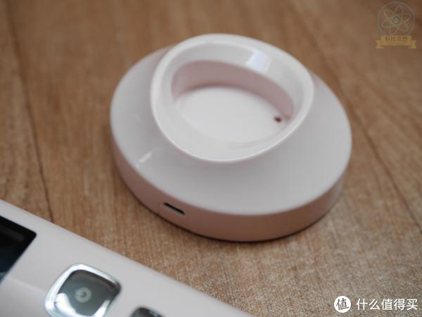 这款美颜仪本身的设计结构比较简单,因此用起来也比较直观,包装当中除了美颜仪之外,还提供了包括收纳袋和充电底座在内的配件。因为美颜仪本身有着IPX6级别的防水能力,但是取消了充电接口,所以需要通过充电底座来实现感应充电。