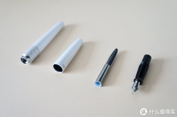钢笔本体拆分一下,插拔式设计笔帽、合金笔杆、不锈钢笔尖、挤压式上墨器。