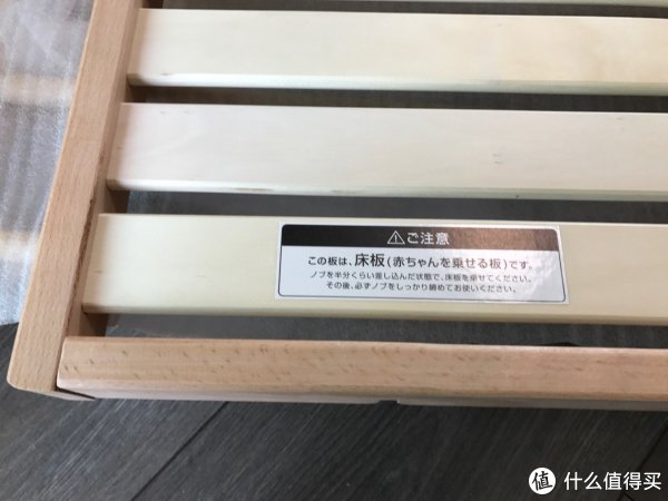 ▼ 床板上的日文标签,就是说明下这个就是婴儿睡的床板,然后指导了下安装方式,其实整个床的安装非常简单,说明书画也很到位,完全不看文字也能轻易理解。