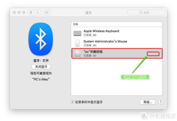 绿色箭头所指的位置是有个“配对”按钮的,点击一下就配对连接完成,可以使用了。我动作快了一点,已经点过了再截图的。