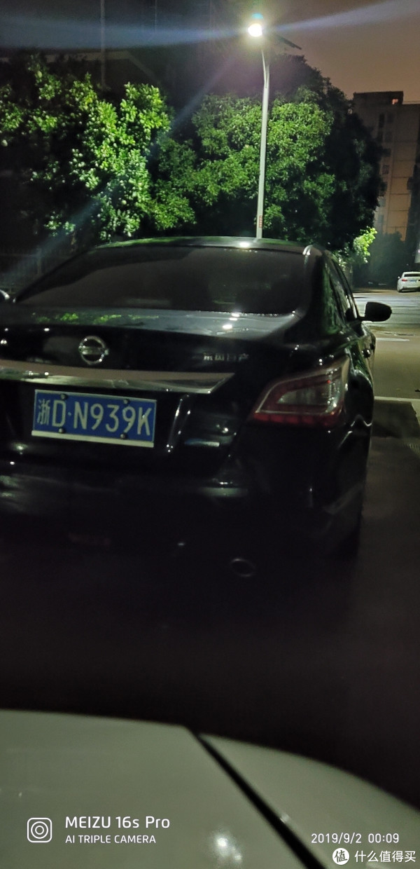 晚上,毛毛雨,对焦车牌,实际肉眼很昏暗。超级夜景模式,固定非手持拍摄,开启“脚架拍摄优化”,大约拍了二十秒。