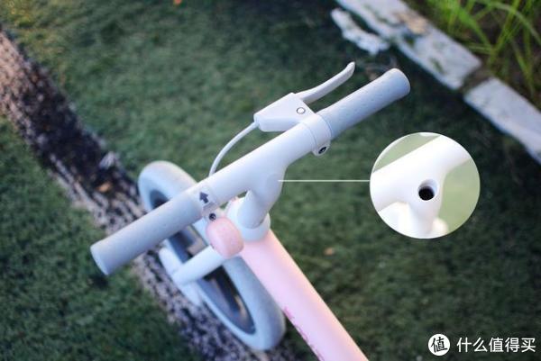 米兔儿童自行车最大限度的隐藏了安装螺栓等,比如车把方向的调整螺栓,设计了一个盖子进行隐藏,保证了整个车身的一体感。