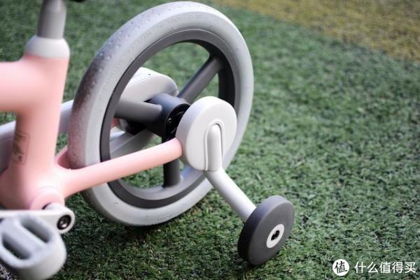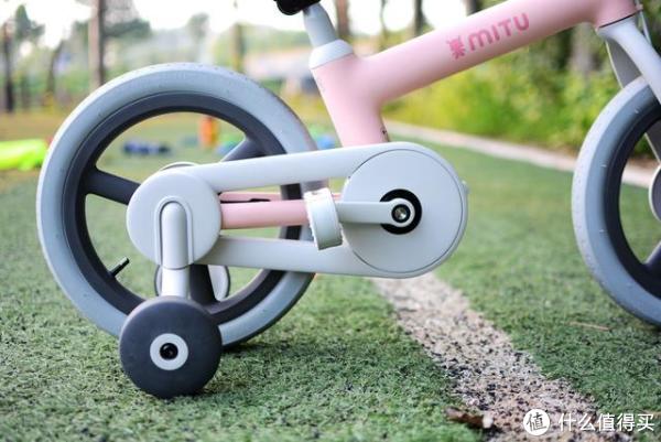 米兔儿童自行车的辅助轮是TPE包胶材质,即便是室内骑行也不会对地板造成损伤,很贴心的设计。