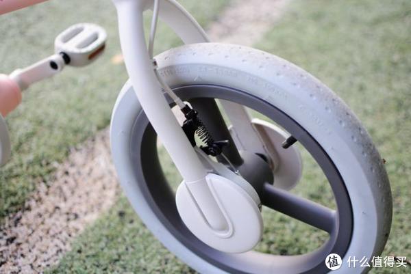 轮胎采用了充气式,这一点我认为非常合理,可以让宝宝骑行的时候更省力,日常骑行也不至于太颠簸。