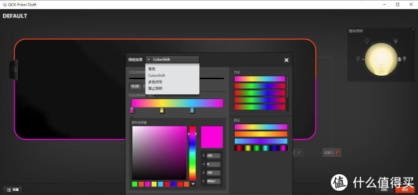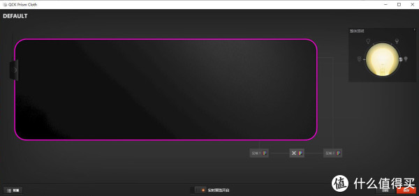 安装赛睿通用驱动SteelSeries Engine 3,就可以自定义 QcK Prism Cloth 鼠标垫的RGB照明效果了。相对来说,设置界面要比键鼠耳机的设置界面简单很多,只有一个灯光界面,并且可以设置与其它赛睿外设进行灯光联动。