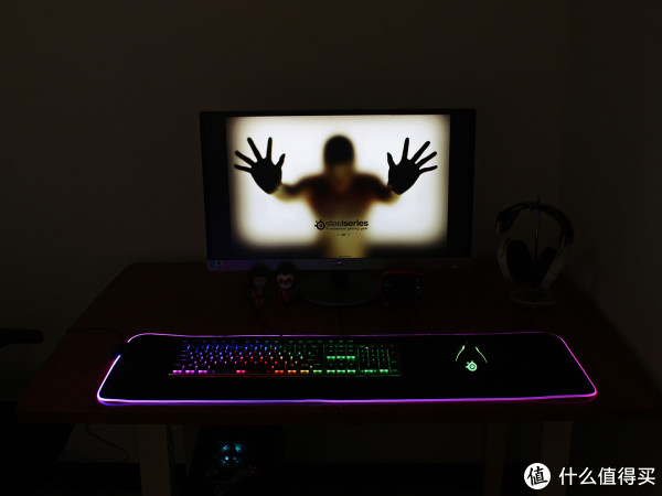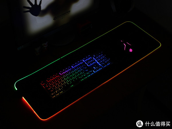 通电后的Qck Prism Cloth才是一个完整体,和未开灯之前是完全两个状态。双区灯效在同类软质鼠标垫中是非常惊艳的存在,灯效柔和不刺眼,颜值不可谓不高。