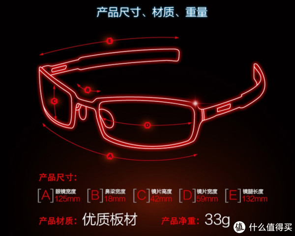 眼镜不像平时我们带的眼镜那样,基本是平的,这眼镜是有一定的弧度的,感觉就像护目镜一样,但是基本不影响佩戴,这里友情提醒下,这副眼镜的宽度,本人感觉应该已经到极限了,如果再宽,带上去会很不好看,单个镜片宽度59 镜片高度42 在一般眼镜里,也属于较宽较高的类型,本人是经过测量了平时佩戴的眼镜尺寸,才决定购买的,这里友情提醒下各位值友,买眼镜的时候,尺寸很重要,不然带上去会很不和谐的。镜腿长度刚刚好,小脸者慎买哦。