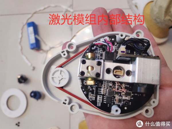 拆开后可以看到激光管和激光的电路版,另外激光是通过马达上的皮带来实现转动的