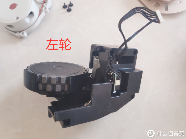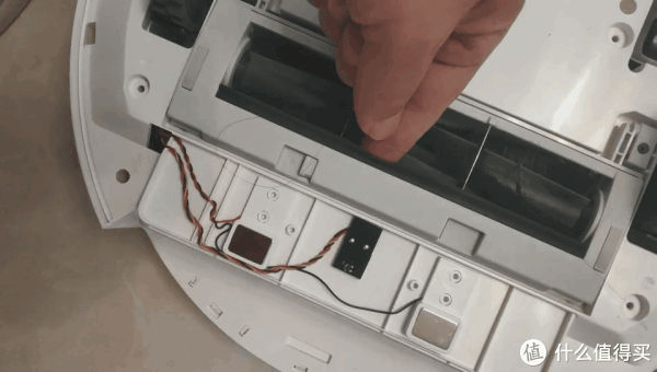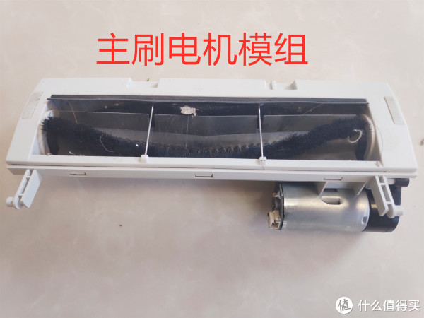 拆掉主板后,就可以从里面拆主刷电机模组了,这主刷电机模组还是浮动结构设计,和石头扫地机器人一样,这种设计在遇到有凹坑的地面或者地板缝隙时可以自动调整高度深度清洁凹陷位置尘土。
